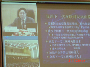 吳建平教授通過(guò)視頻會(huì)議系統(tǒng)在大會(huì)發(fā)言