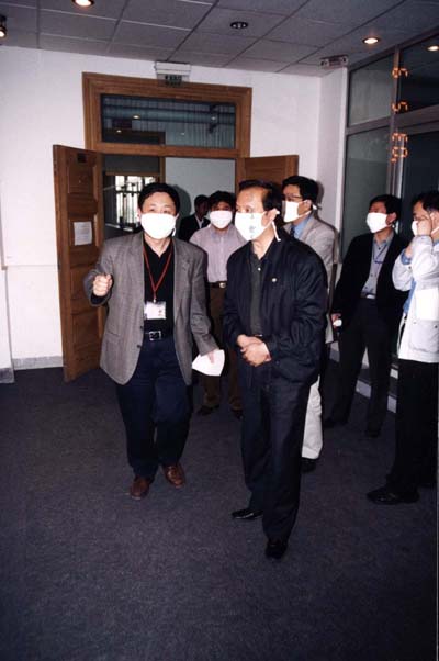 進(jìn)入網(wǎng)絡(luò)中心,教育部趙沁平副部長(zhǎng)及其他領(lǐng)導(dǎo)嚴(yán)格遵守網(wǎng)絡(luò)中心“非典”