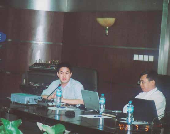 公司領(lǐng)導(dǎo)向來賓介紹VOIP業(yè)務(wù)情況