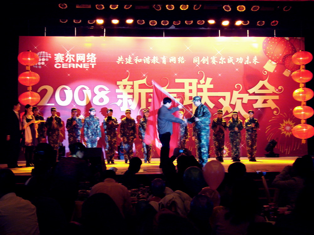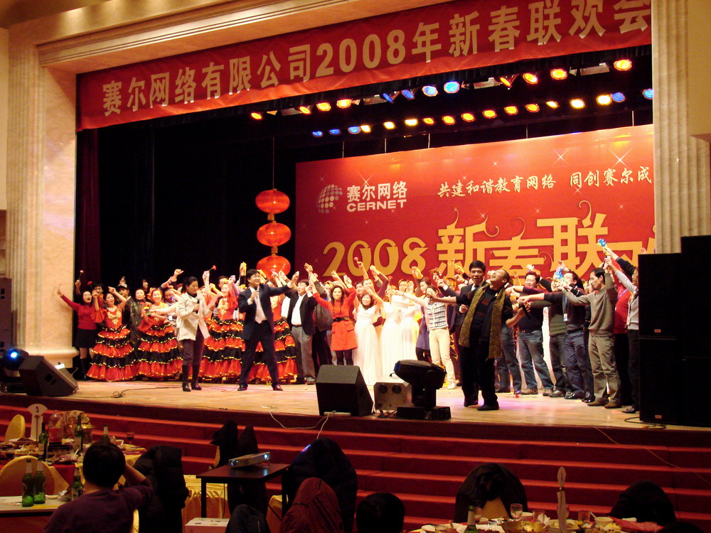 1月30日晚19:00,北京西郊賓館一號樓銀杏大廳內(nèi)座無虛席、歡聲笑語,洋溢著節(jié)日的氣氛。以“共建和諧教育網(wǎng)絡(luò),同創(chuàng)賽爾成功未來”為主題的賽爾網(wǎng)絡(luò)有限公司2008新春聯(lián)歡會在這里隆重舉行,清華大學(xué)領(lǐng)導(dǎo)與CERNET專家、公司領(lǐng)導(dǎo)、全體員工以及分公司、子公司的代表380多人歡聚一堂,共慶佳節(jié)。