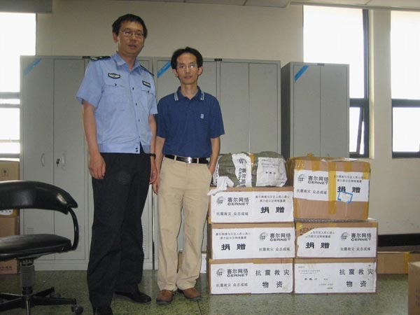 地震發(fā)生后,賽爾網(wǎng)絡(luò)積極參與抗震救災(zāi)工作,5月19日,在與公安部溝通中得知戰(zhàn)斗在抗災(zāi)第一線的成都市公安局急缺公安專用通信設(shè)備,公司緊急購買了五套TK850常規(guī)轉(zhuǎn)信臺設(shè)備發(fā)往成都市公安局,并委托四川分公司完成捐贈設(shè)備的交付工作。