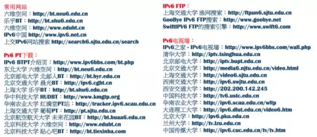 CERNET IPv6部分國(guó)內(nèi)常用資源