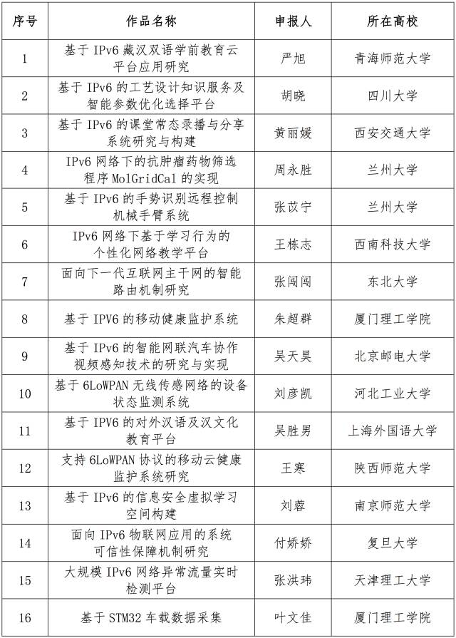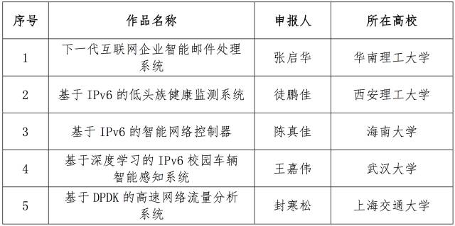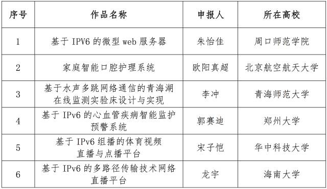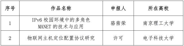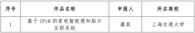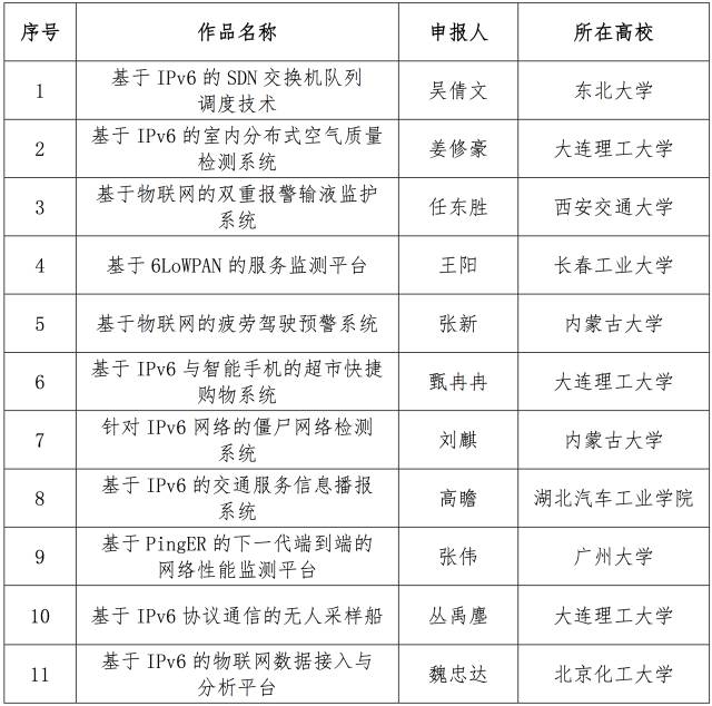 12月10日,面向全國大學(xué)生的下一代互聯(lián)網(wǎng)技術(shù)創(chuàng)新大賽在清華大學(xué)落幕,來自南京理工大學(xué)的IPv6校園環(huán)境中的多角色MANET的技術(shù)與應(yīng)用、電子科技大學(xué)的物聯(lián)網(wǎng)主機(jī)定位配置協(xié)議研究、和上海交通大學(xué)的基于IPv6的家電智能感知貼片互聯(lián)系統(tǒng)從230多個(gè)作品中脫穎而出,獲得大賽一等獎(jiǎng)。