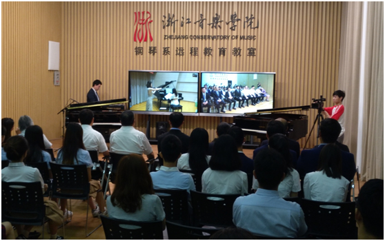 據(jù)介紹,這套鋼琴遠(yuǎn)程教學(xué)系統(tǒng)由浙江省省長基金資助,浙江音樂學(xué)院與日本雅馬哈株式會社合作開發(fā),在傳統(tǒng)遠(yuǎn)程教學(xué)技術(shù)基礎(chǔ)上,通過應(yīng)用最先進(jìn)的傳感技術(shù)和控制技術(shù),將鋼琴家在一臺鋼琴上的演繹,以同步無人演奏的方式,在全世界任何地點的另一臺鋼琴上精確、完美再現(xiàn)。該系統(tǒng)打破了地域、時間和空間的限制,使系統(tǒng)兩端遠(yuǎn)隔萬里的師生近在咫尺、身如其境,將傳統(tǒng)的一對一鋼琴教學(xué)拓展為一對多、多對一、多對多,為全球音樂院校師生之間的相互交流、學(xué)習(xí)借鑒提供便利,使學(xué)院師生不出校門就可以接受世界頂尖藝術(shù)大家的精彩授課。