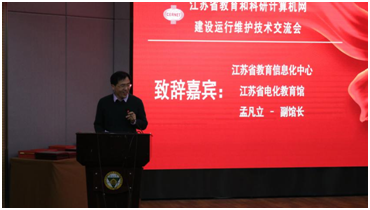 江蘇省教育信息化中心、江蘇省電化教育館孟凡立副館長(zhǎng)在會(huì)上介紹了2019年省網(wǎng)建設(shè)工作情況。